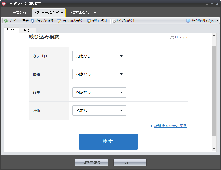 実際にサイトへ組み込む際の検索フォームのプレビューや