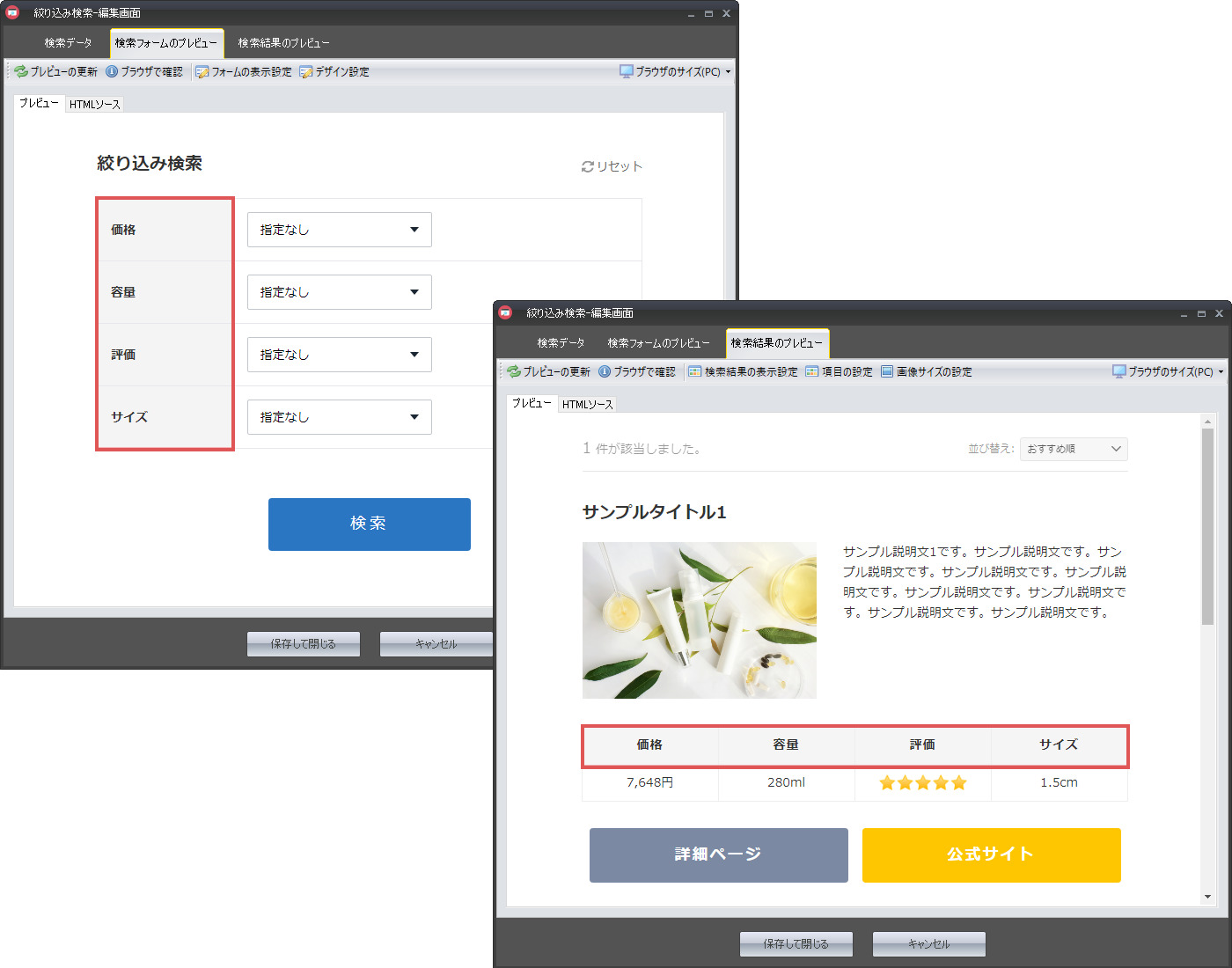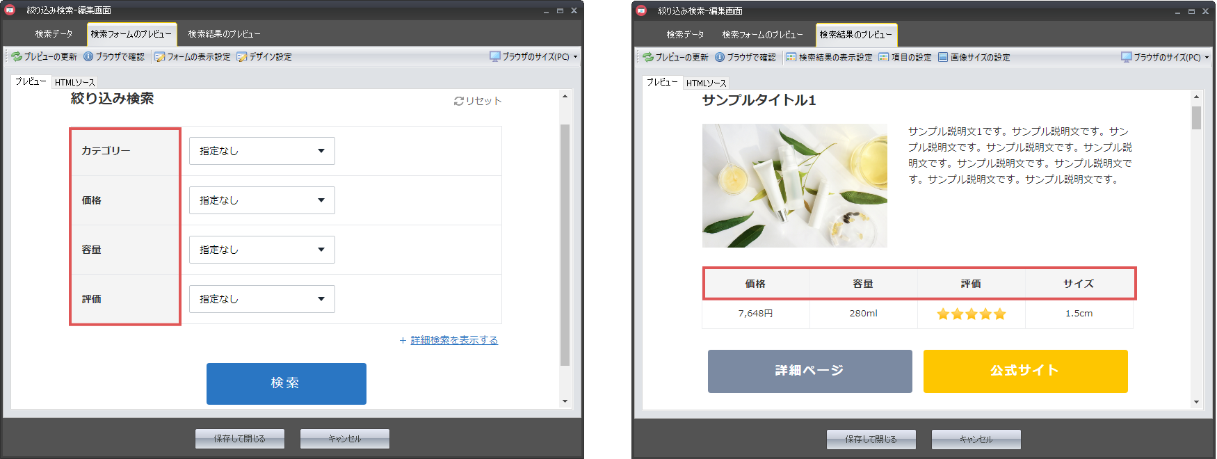 検索項目は最大で10個まで設定できますが、必ずしも全てを設定する必要はありません。ご自身が作成するサイトに合わせ、適切な数の検索項目を設定してください。