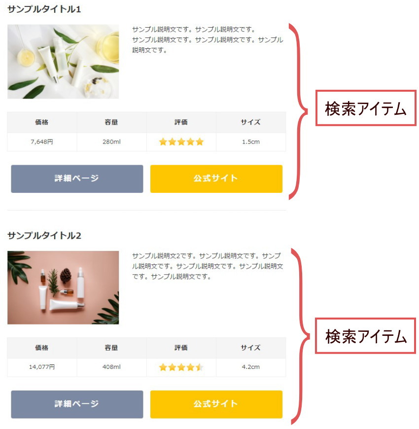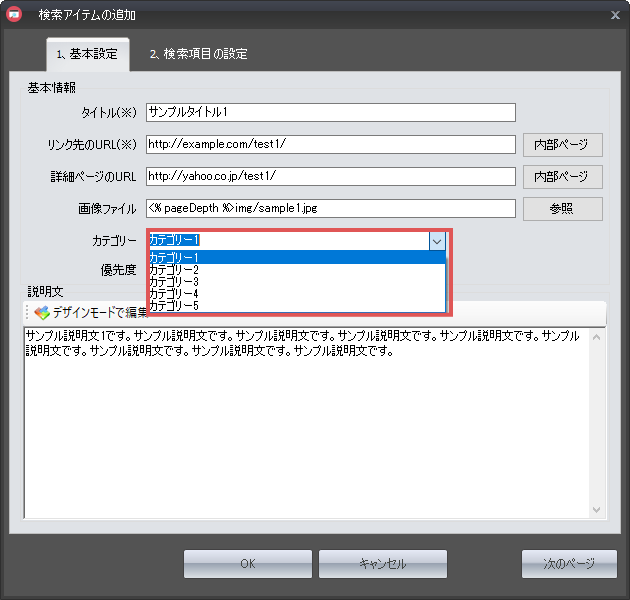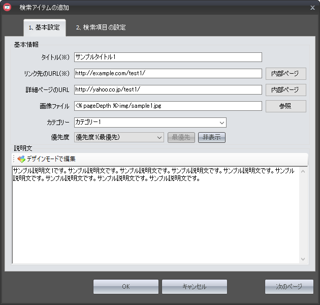 検索アイテムの説明文を記述します。