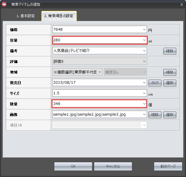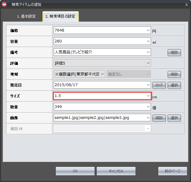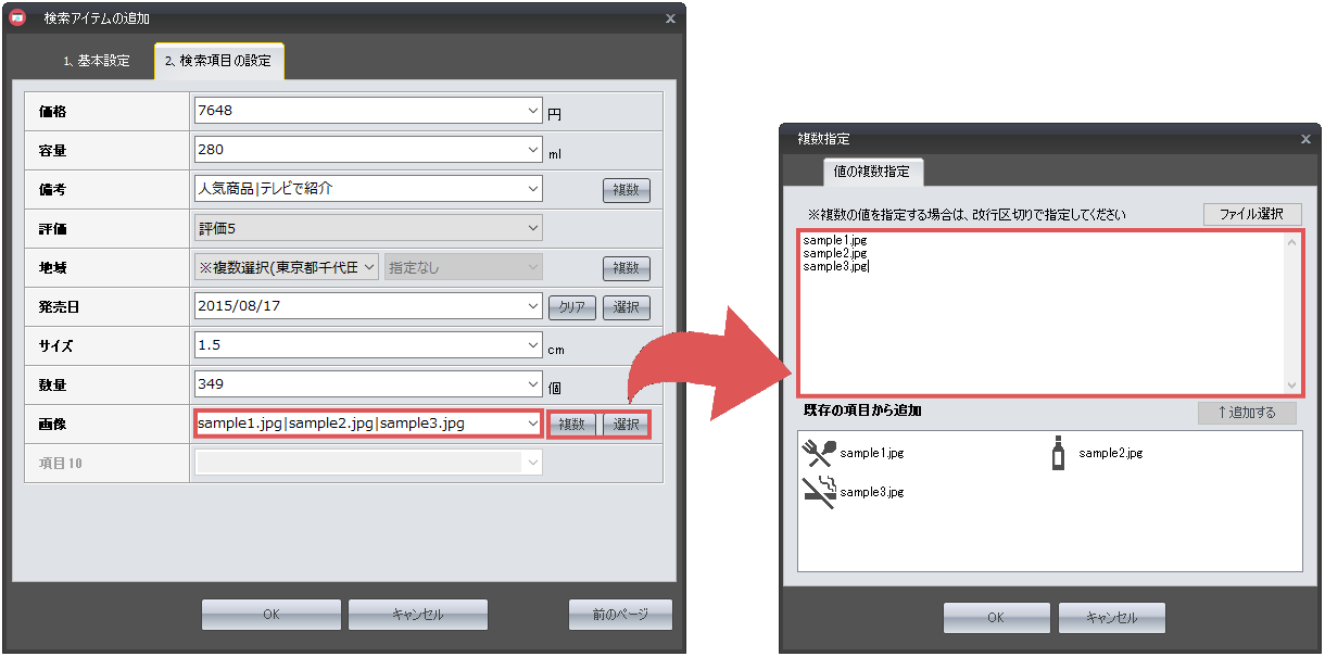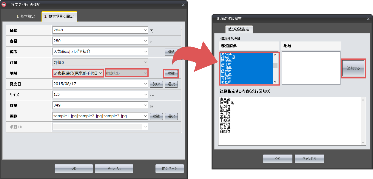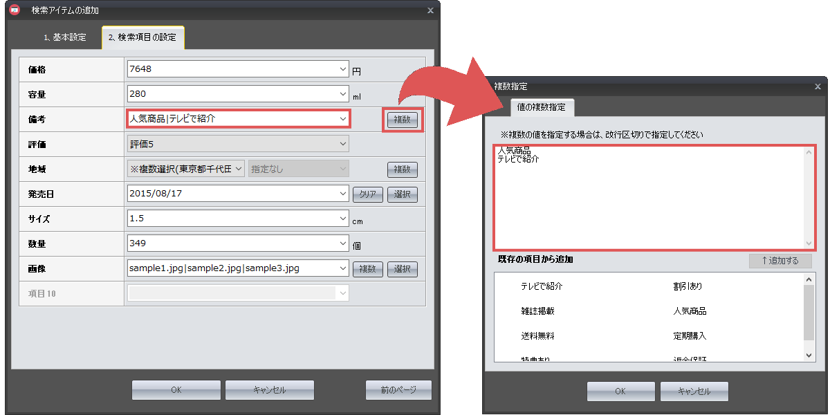 また「複数」ボタンを設定することで、複数の項目を設定することが可能です。