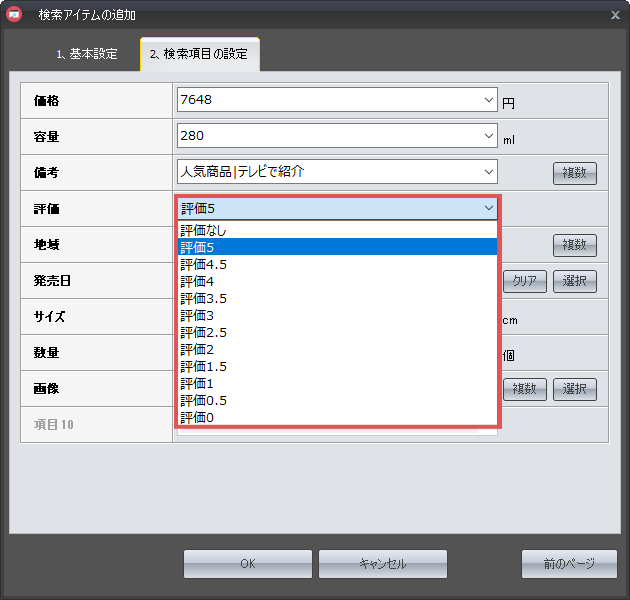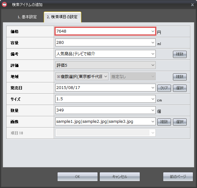 『2.検索項目設定』のタブを選択すると、
