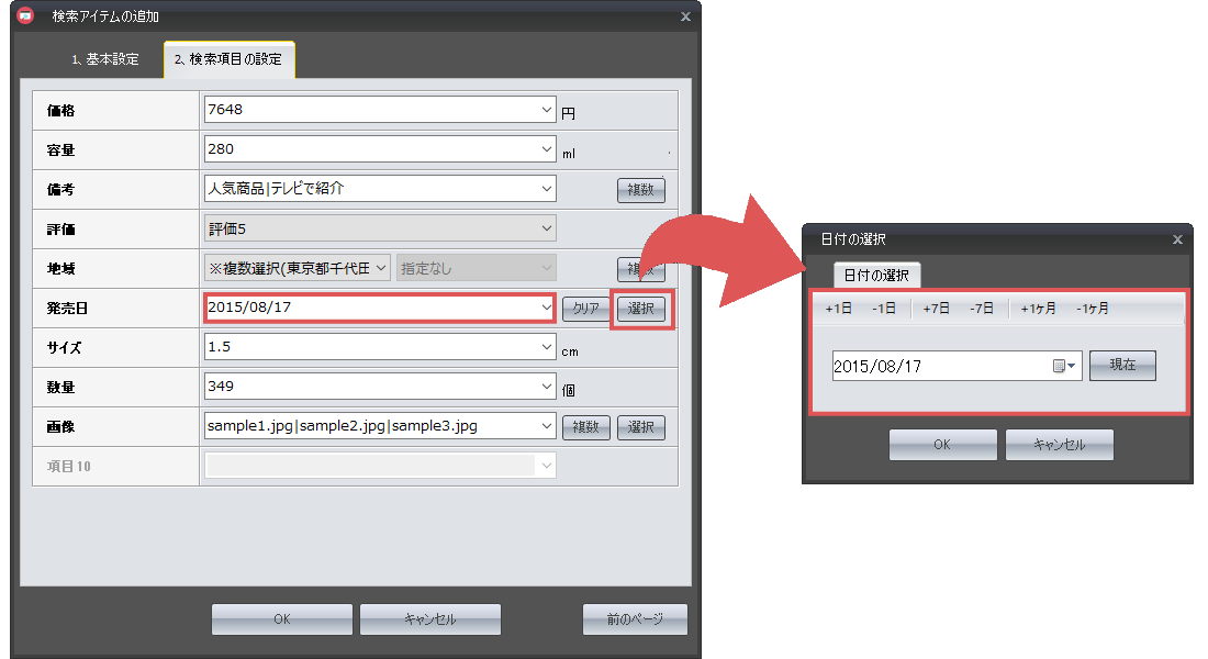 検索項目が骨組みだとすれば、検索アイテムは「肉付け」の部分にあたり、