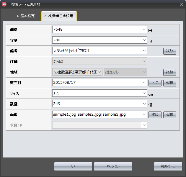 10個の検索項目とは別に設定できる内容となり、