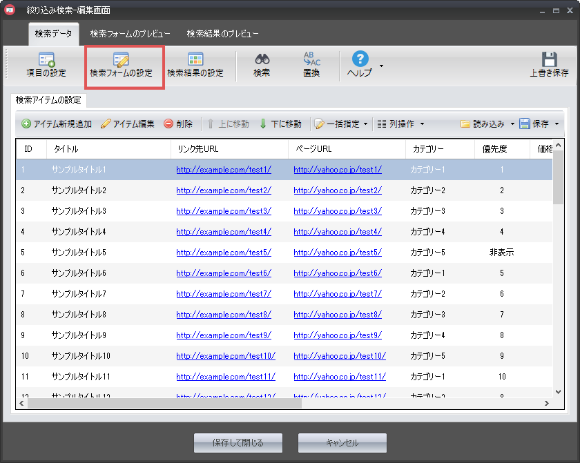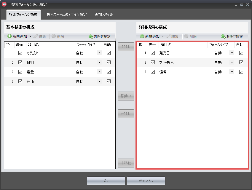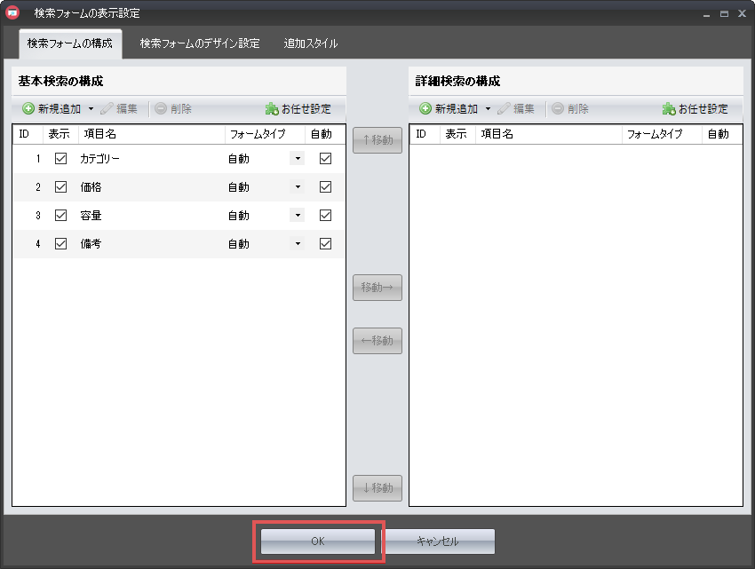 検索アイテムの追加が終わったところで、次は検索フォームの設定を行います。