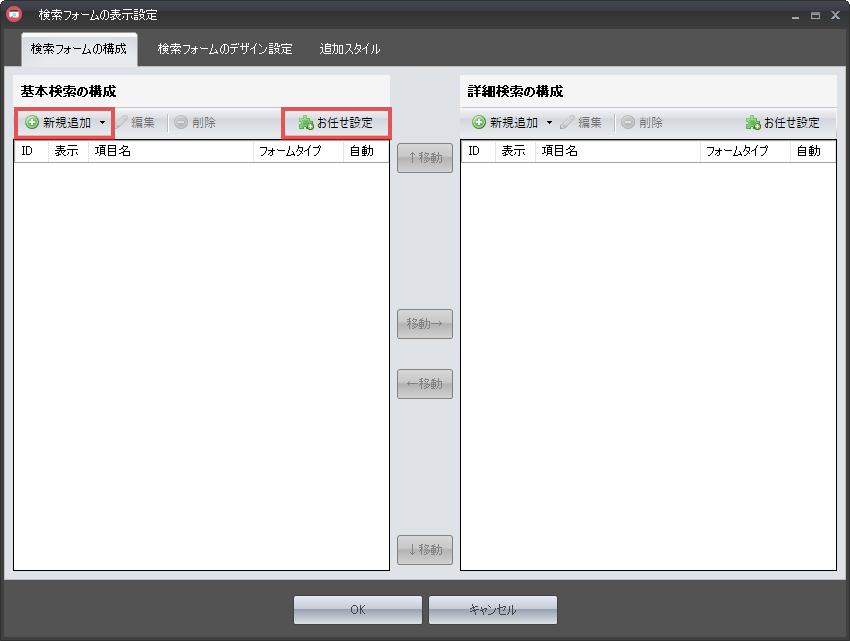すると下図の検索フォーム設定画面が表示されます。