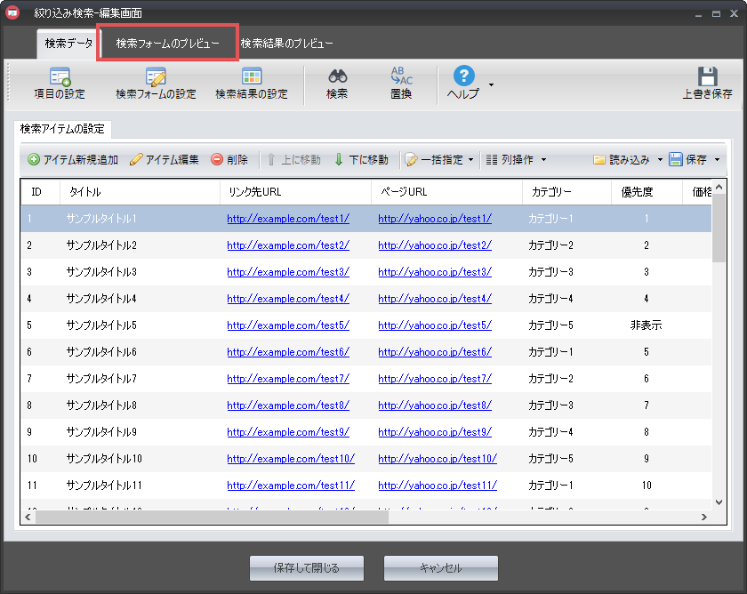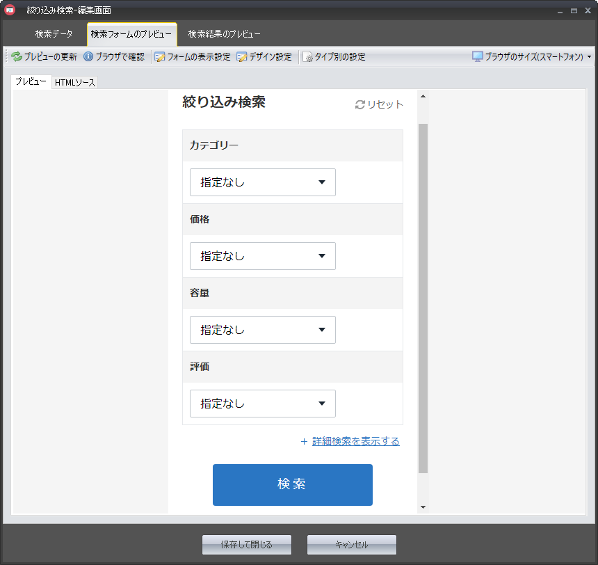 すると、下図の検索フォームプレビュー画面が表示されます。