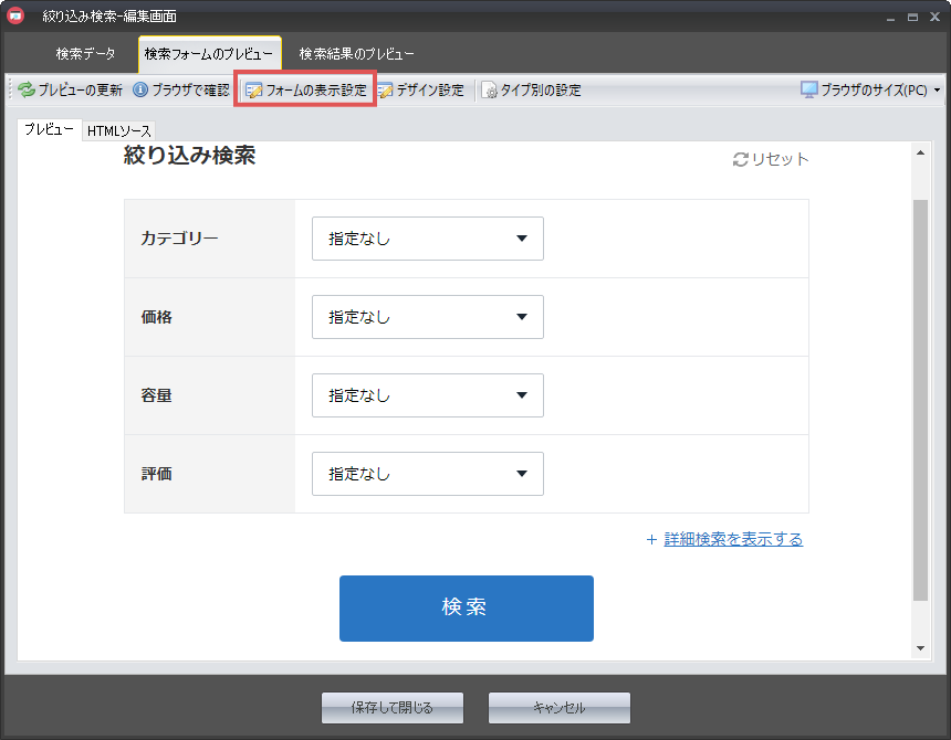 「検索フォームのプレビュー」タブを開く
