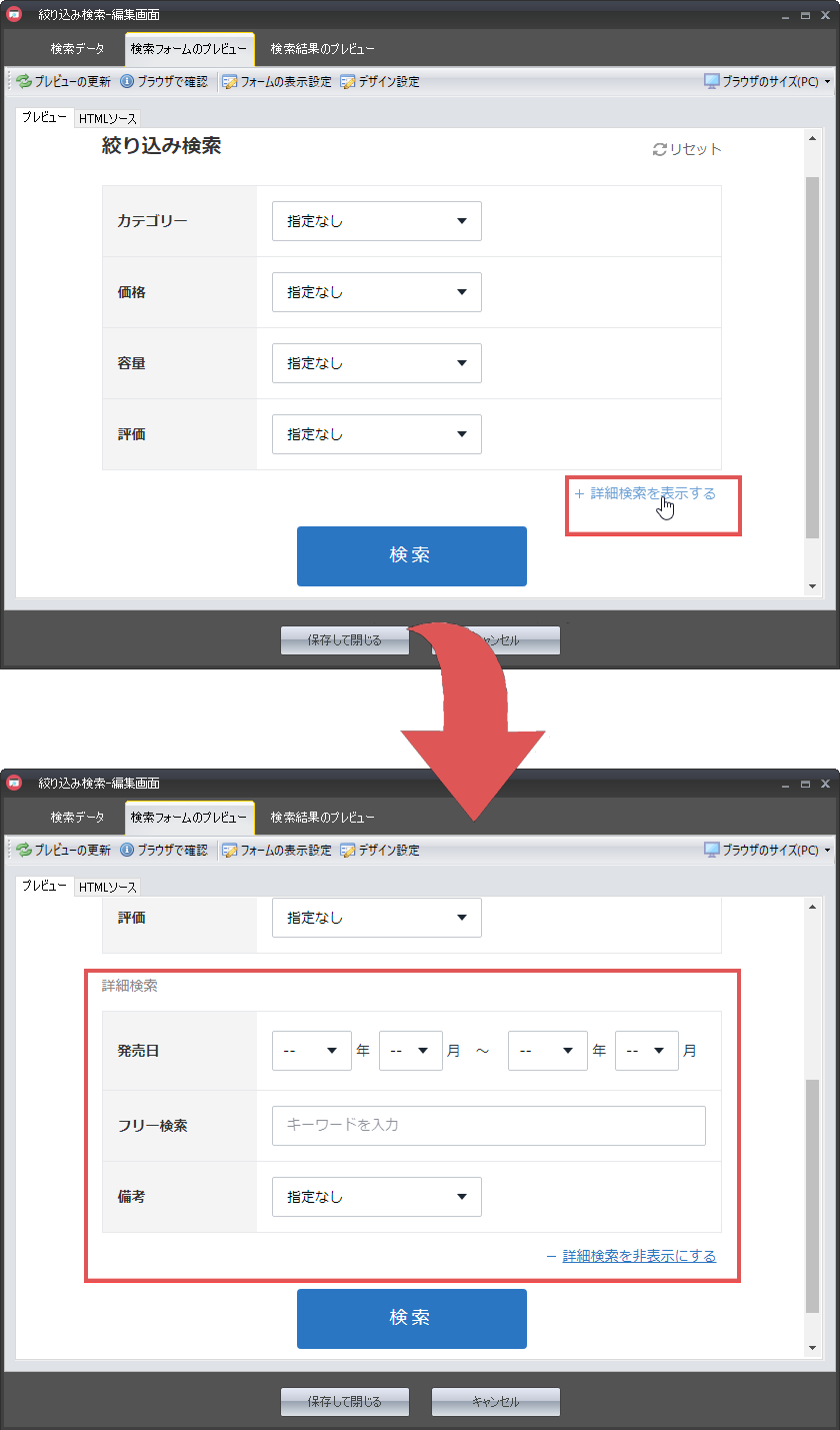 詳細検索の構成を設定する