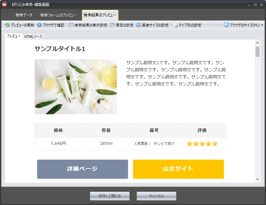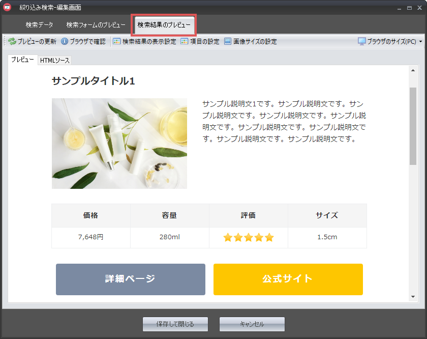 すると下図のような、検索結果プレビュー画面が表示されます。
