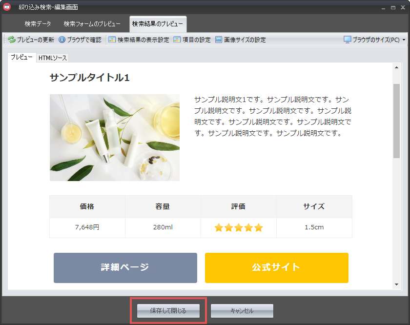 検索結果ページのデザイン等の設定も完了すれば、絞り込み検索の設定は完了です。