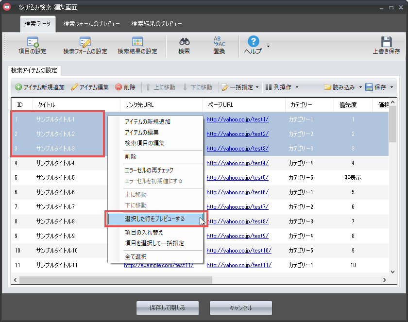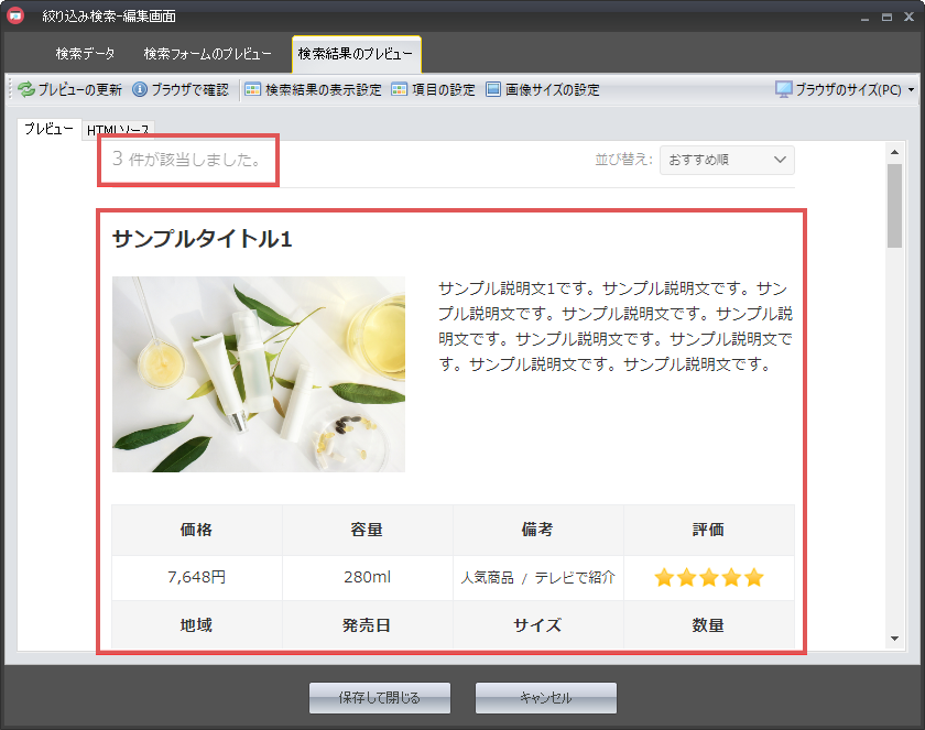 選択した検索アイテムのみを検索結果としてプレビュー表示させる事ができます。