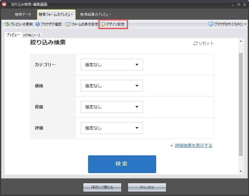 この画面で検索フォームのデザインに関する設定を行っていきます。