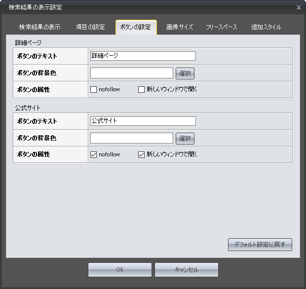 この画面上から、検索結果ページ上に表示される各ボタンの設定を行います。