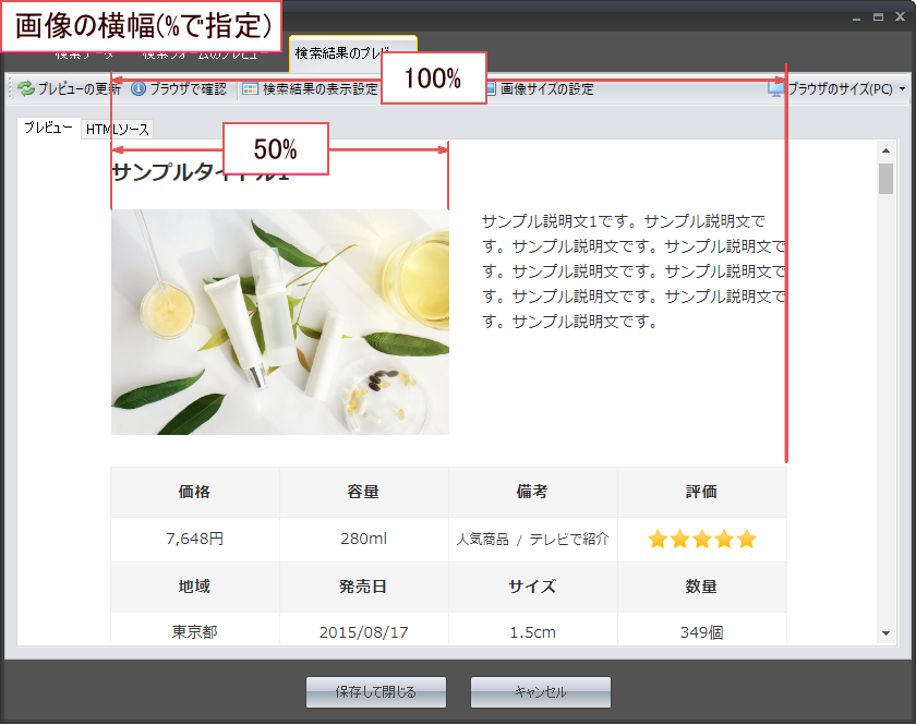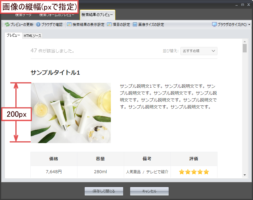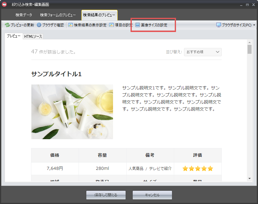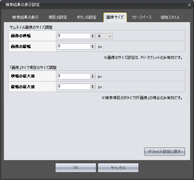 検索結果ページのサムネイル画像のサイズを変更する場合は、