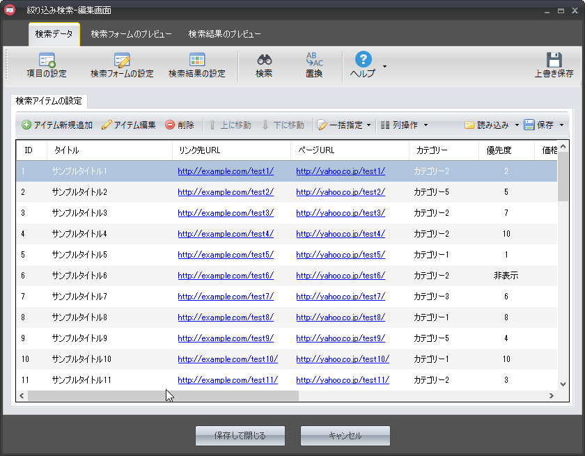 絞り込み検索の設定を行う上で最も多く操作を行うことになるのが「検索アイテムの設定」となりますが、本プラグインには、各操作を効率化するための便利機能が多数備わっています。このページでは、各機能の詳細について1つずつ解説を行います。